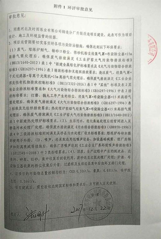 環(huán)評審批意見-河北及時雨泵業(yè)有限公司