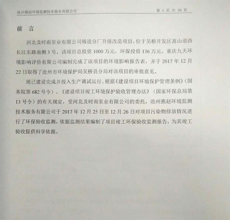 河北及時雨泵業有限公司鑄造分廠升級改造項目竣工環境保護驗收意見公示