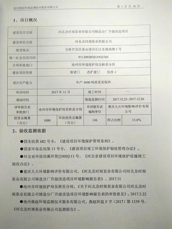 河北及時雨泵業有限公司鑄造分廠升級改造項目竣工環境保護驗收意見公示